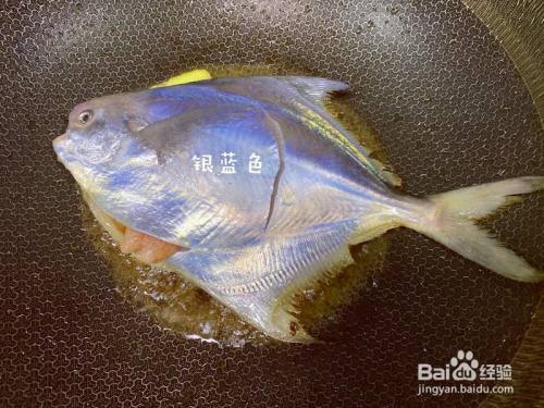开大火热油放入姜片爆喷鼻后,放入鲳鱼,如图可见,东海鲳全身标致的银蓝色(偏光效果杠杠滴)。 我有点懒,油煸过蒜苔后没有洗锅,直接用了底油,勤奋的厨友们不要跟我学哦,照旧要精致一些更好,鱼的出品会更雅观。