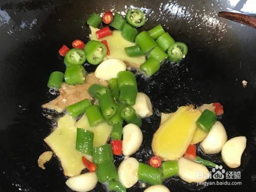 热油先下入姜、蒜煸炒出喷鼻味,再插手辣椒炒喷鼻,辣椒不成放太早,由于辣椒比姜蒜容易焦。