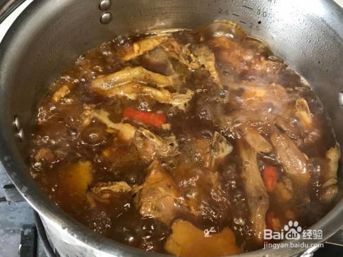 插手生抽、老抽、冰糖翻炒匀称,可以转移到炖锅中,倒入啤酒,大火煮开后转小火炖1-2小时,详细时间按照鸭肉软烂水平节制(试试就知道了)。