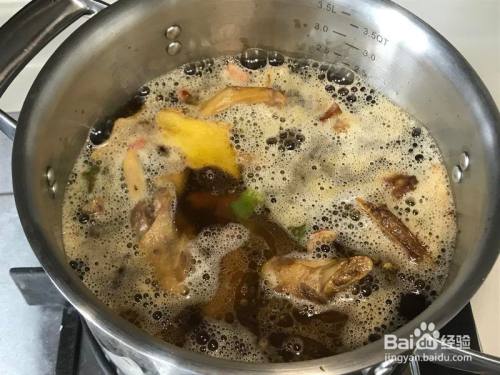 水开后打去浮沫,鸭肉洗濯洁净沥干备用,最好用温水或热水洗濯,用冷水鸭肉会缩紧,可能需要炖煮更久才能入味和软烂。