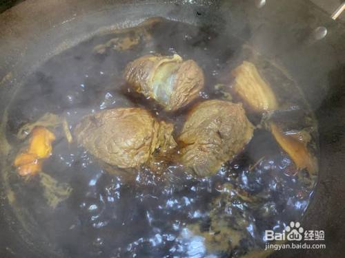 一直卤,半小时摆布给翻面。各个偏向都要卤到。筷子戳一下,差未几软烂就捞出吧。想要更有肉味,我建议放一段5花肉一路卤,卤40分钟就可以先捞出。