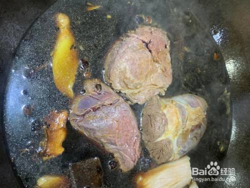 开锅调卤水。炒喷鼻喷鼻料,姜片喷鼻叶小茴喷鼻草果桂皮八角等。不会配的去买个卤料包吧。闻到喷鼻味放油再爆炒一下,插手冰糖,白糖。可以加开水2升。