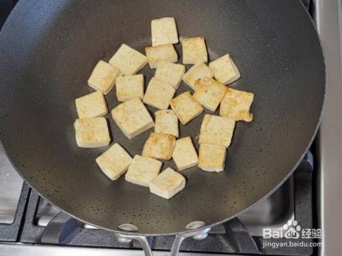 我用了豆腐,以是豆腐先用少许油煎至两面金黄。