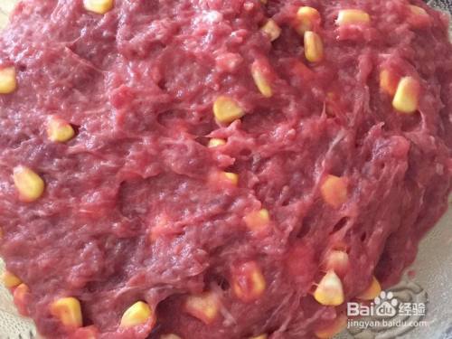 除了姜葱水外,把所有的调料倒入肉里用面包机按和面程序搅(或用双筷子顺一个偏向搅拌到上劲,这样手就比力累)
