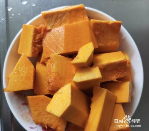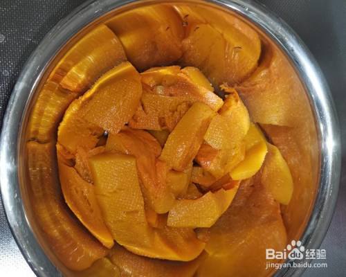 蒸熟后的南瓜放盆里,凉凉。