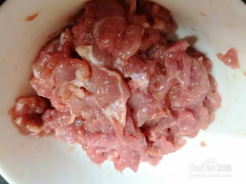 切肉碎和腌肉(用1汤匙油,半汤匙盐,1汤匙酱油,1汤匙生粉依次拌匀)