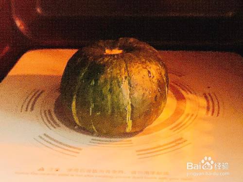 筹办一只正宗的贝贝南瓜,很小那种,洗洁净,整个丢微波炉高火叮10分钟即可。