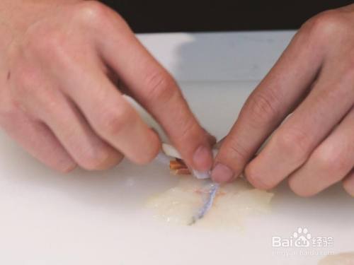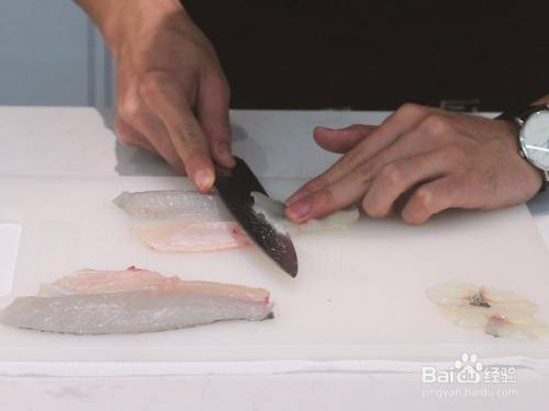 将处置惩罚好的鲈鱼头部和尾巴支解出来,然后沿着主骨剔除鱼刺(双方鱼肚上的刺也要剃失)