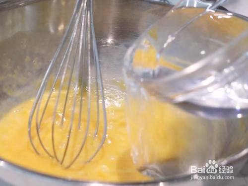 将鸡蛋打散然后插手温开水继续打匀。水和鸡蛋比例1:1.5(这样蒸出来的鸡蛋口感会越发爽滑)