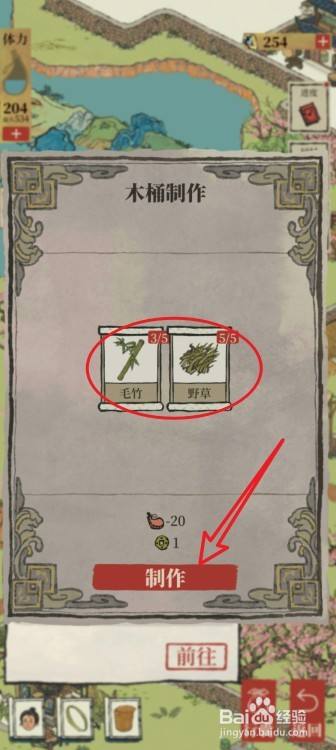 往事情台投入3份毛竹和5份野草,点击下方的【建造】按钮。