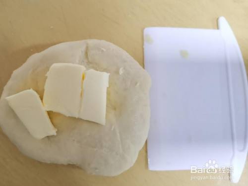 此时插手室温软化的黄油,继续揉面让面团和黄油融为一体。刚起头会很是粘稠,可以用手抓的方式,很快面团会和黄油融合。继续采用掌根标的目的前搓的方式揉面。 ️:要是面团很是湿软不容易揉面的话,可以采用重复摔打面团的方式,最后也会形当作手套膜。