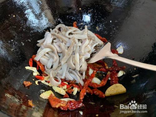 辣皮子炒喷鼻后下葱姜 一半量的蒜 继续翻炒 (喜欢吃辣的小伙伴可以再放点岌岌可危天椒 或者辣的小米椒)