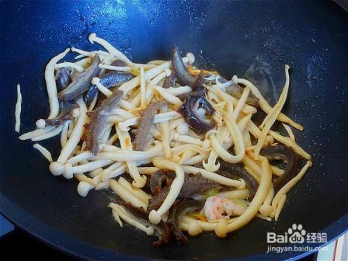 步调1 海鲜菇去失根部,洗濯洁净后烧开水焯烫一下。水烧开放入海鲜菇,煮2分钟捞出就可