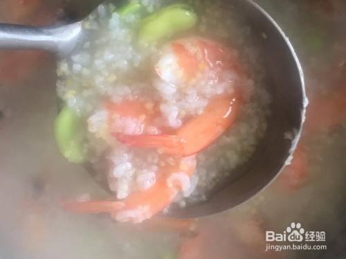 筹办蚕豆和虾的时辰可以同时煮粥,煮粥时除大米外可加些玉米碎粒、小米等杂粮,粥煮好后,放蚕豆先煮熟