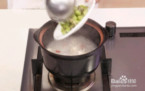 打开盖,把猕猴桃和西米倒进去,拌匀