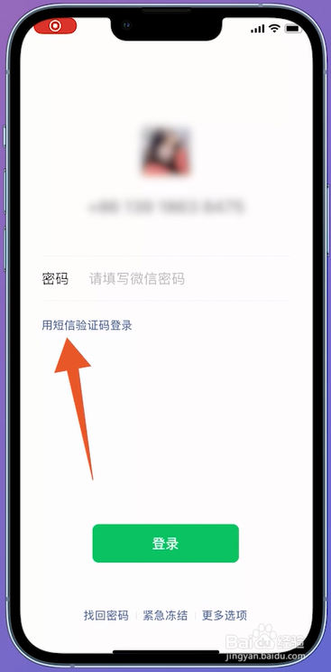 进入微信的登录页面,在页面中点击用短信验证码登录。