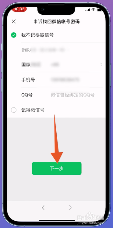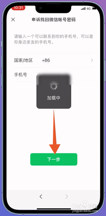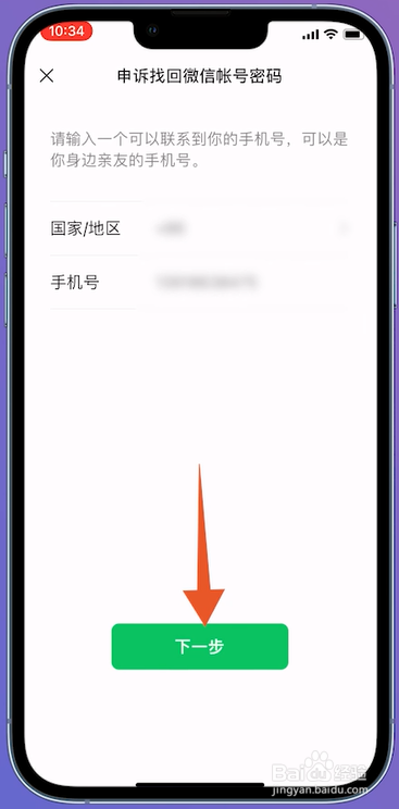 在申说的页面输入手机号,输好之后点击下一步。