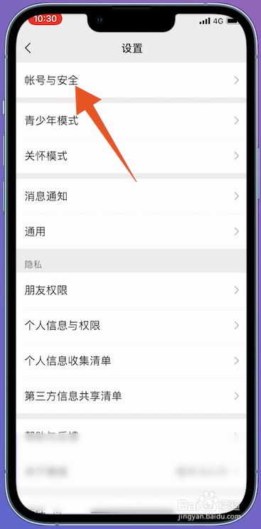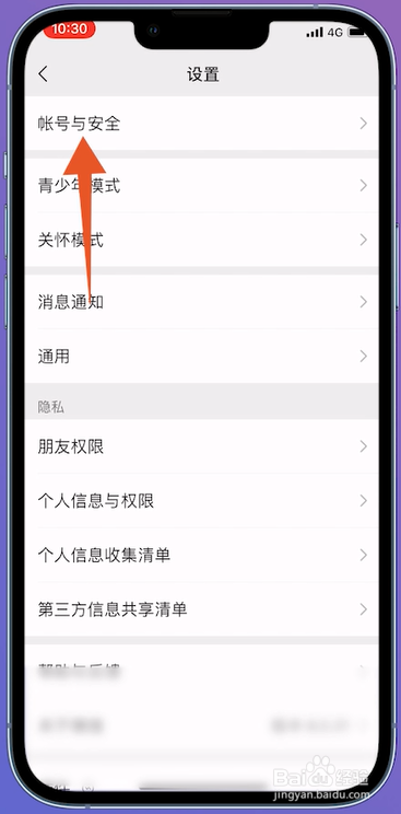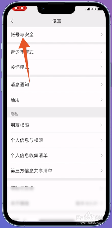 进入设置的页面之后,在页面中点击帐号与安全进入露冲。