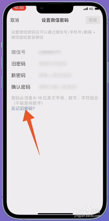 进入微信密码的页面之后,在页面中点击健忘旧密码进入。