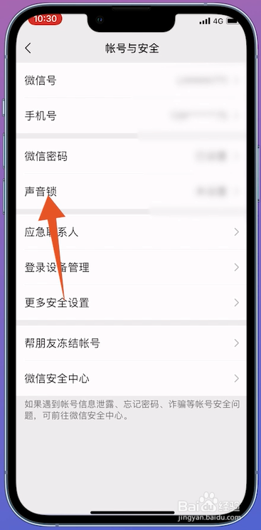 进入帐号与安全的页面之后,在页面中点击声音锁进入。