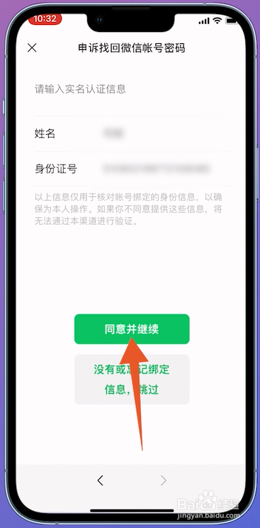 点击下一步之后,在页面中输入实名信息,点击赞成并继续。