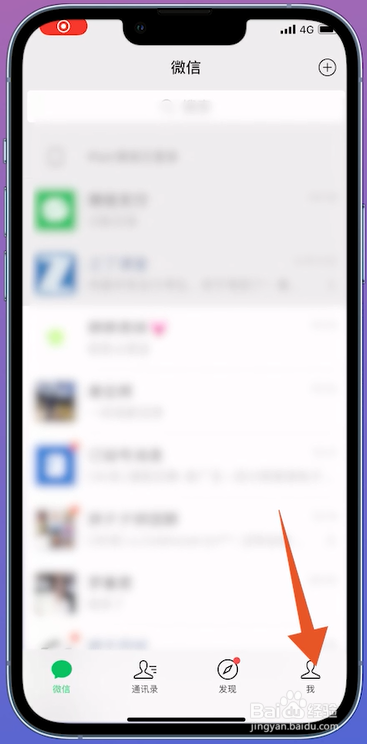 打开微信点的谈天界面,在页面中点击右下角的我。