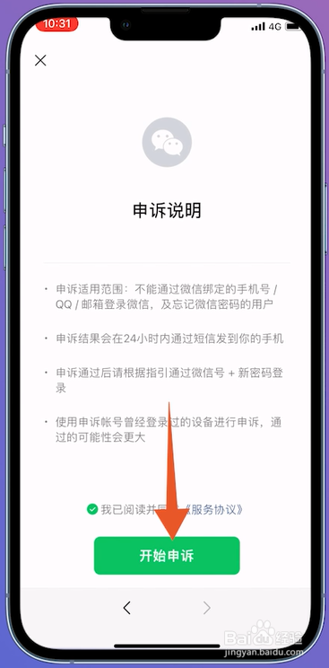 跳转页面之后,勾选赞成和谈点击起头申说选项。