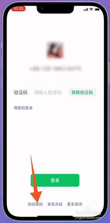 进入微信的登录页面,在页面下方点击找回密码进入。