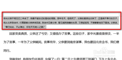 首先打开word,可以看到两头文字行距不同一,可能是因为字号巨细差别造当作的,选中文字。