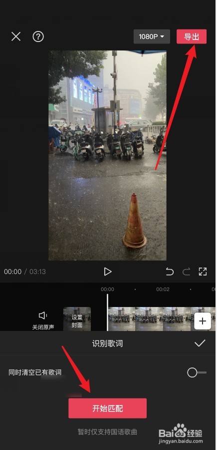 最后,点击【起头匹配】再点击右上方的导出。将导出的视频上传至快手即可