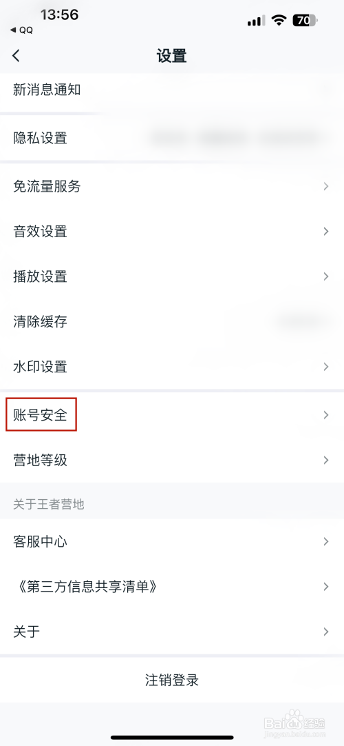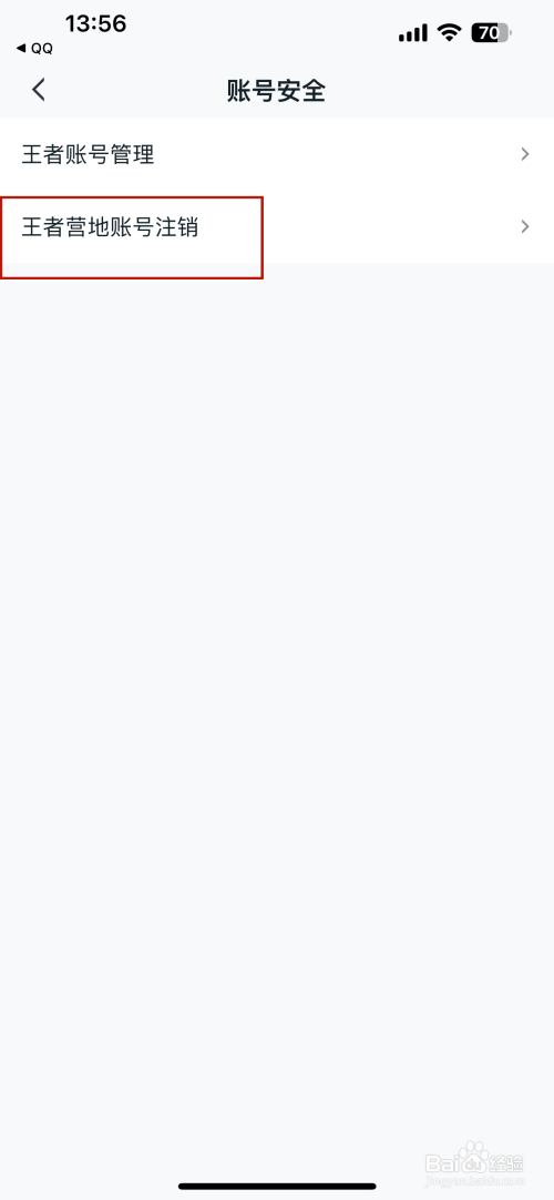 打开账号安全的界面点击王者营地账号刊出选项,