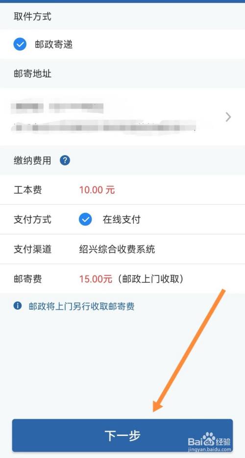输入邮寄地址后,点击【下一步】,页面跳转后点击输入验证码,然后点击【提交】。