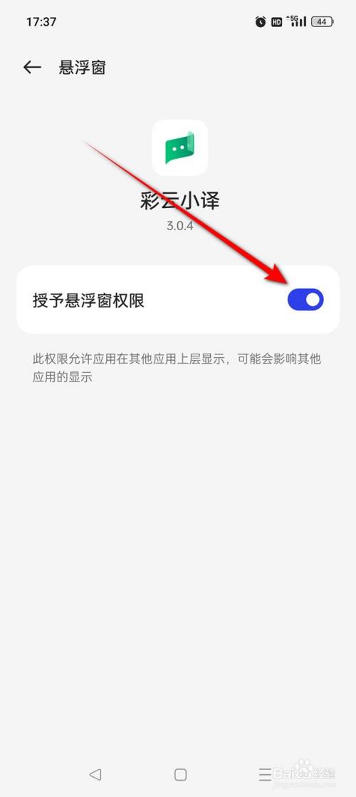 将“授予悬浮窗权限”旁的小滑块点亮。