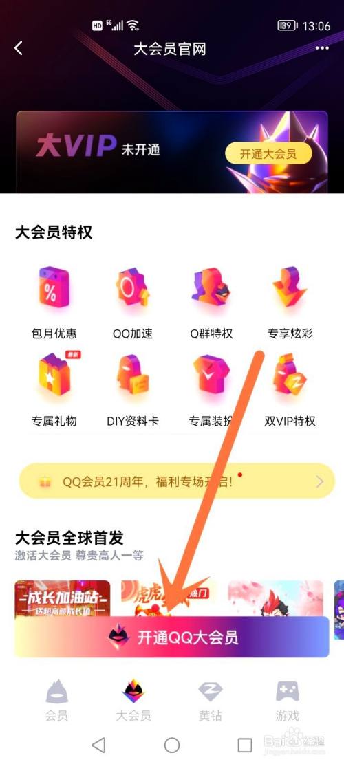 选择开通QQ大会员。