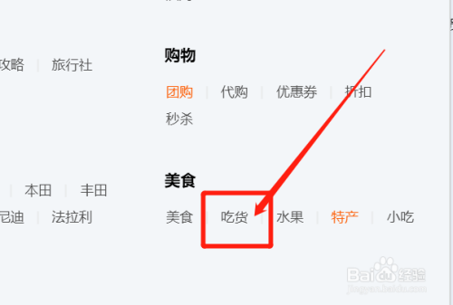点击【美食】,如图。