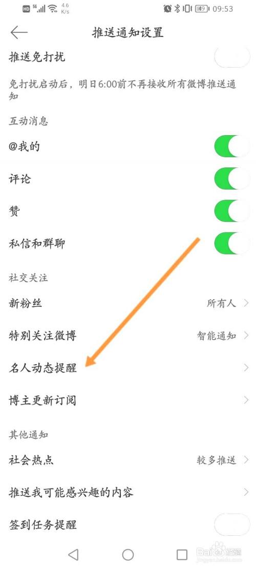 5、找到封闭名人动态提示功效。