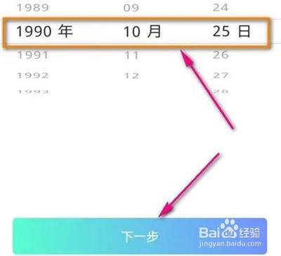 接下来,在基本信息页面中输入本身的性别、出生日期个人信息后,鄙人方点击“下一步”按钮。