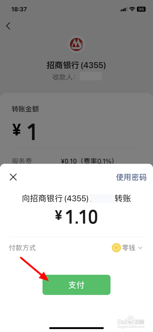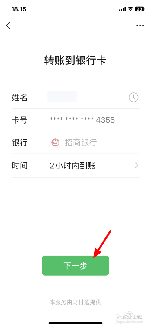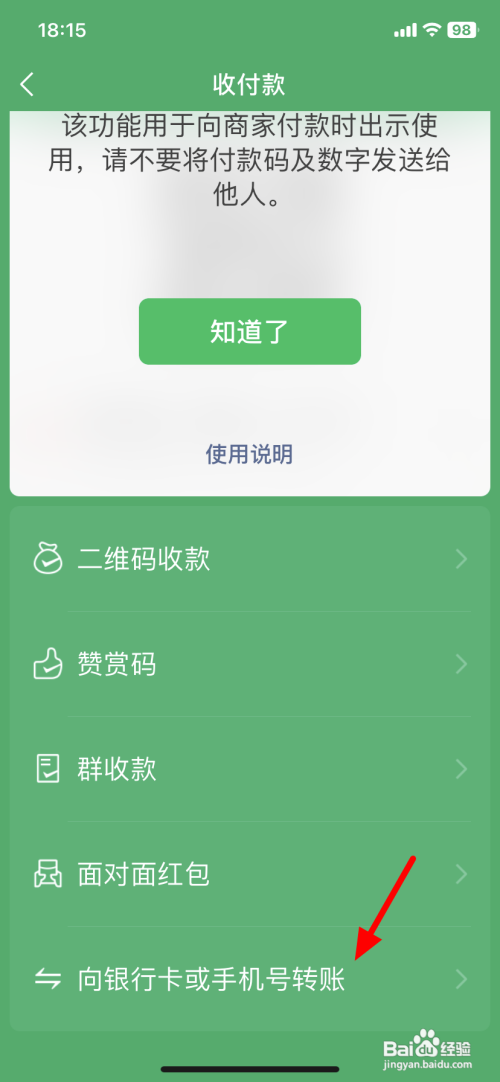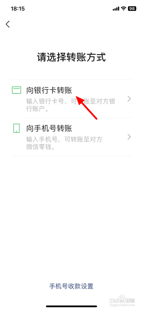 在收付条目界面,点击标的目的银行卡或手机号转账。