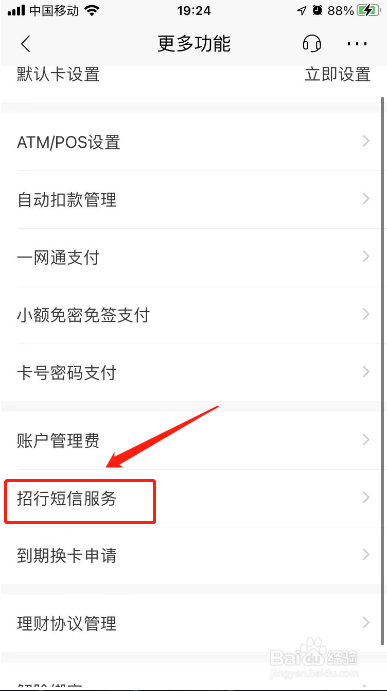 进入更多功效,点击【招行短信办事】。