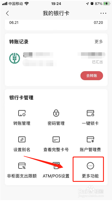 进入银行卡办理,点击【更多功效】。