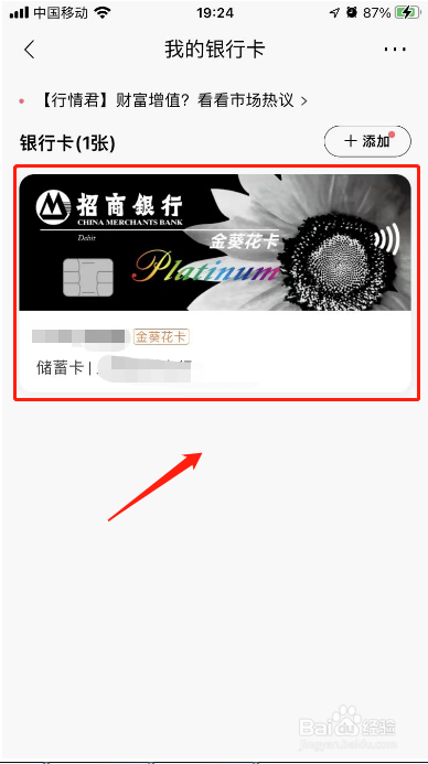 进入招商银行我的,点击【银行卡】。