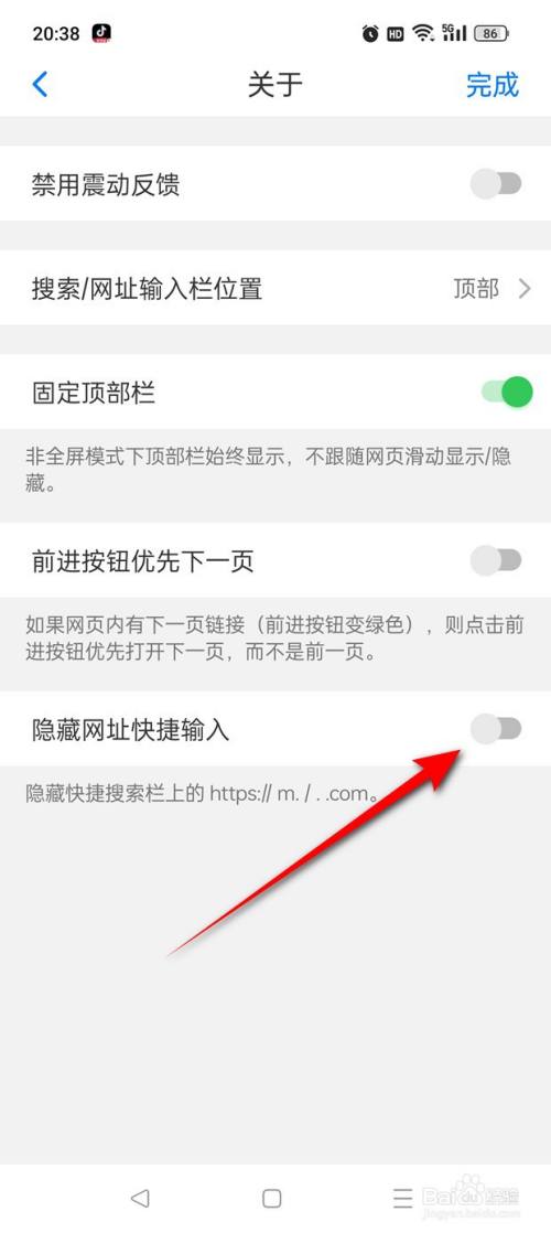 将“隐蔽网址快捷输入”旁的小滑块点亮即可开启。
