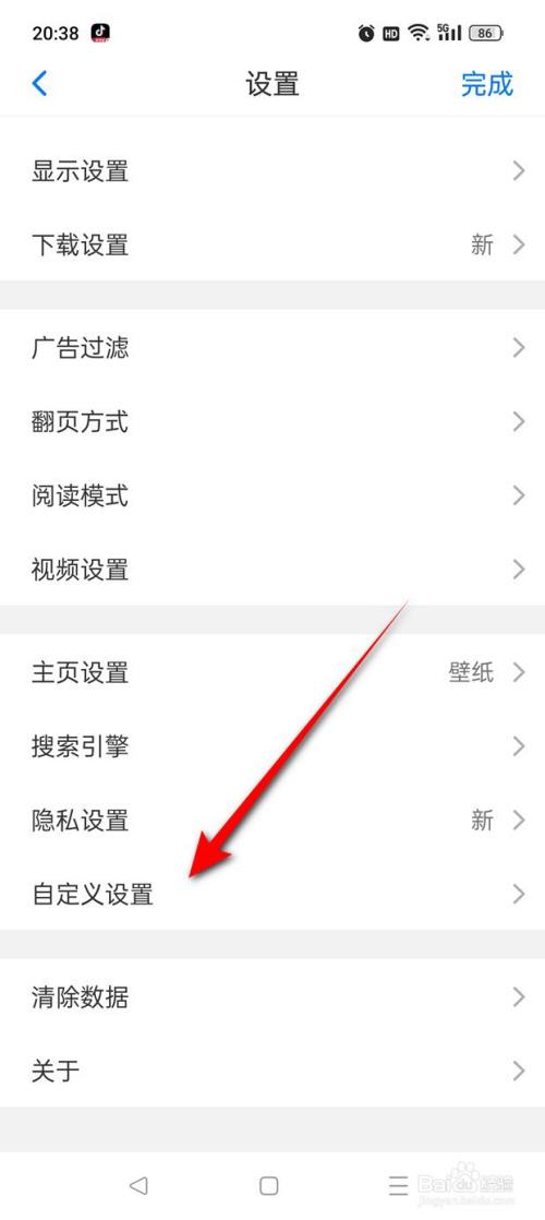 点击“自界说设置”。