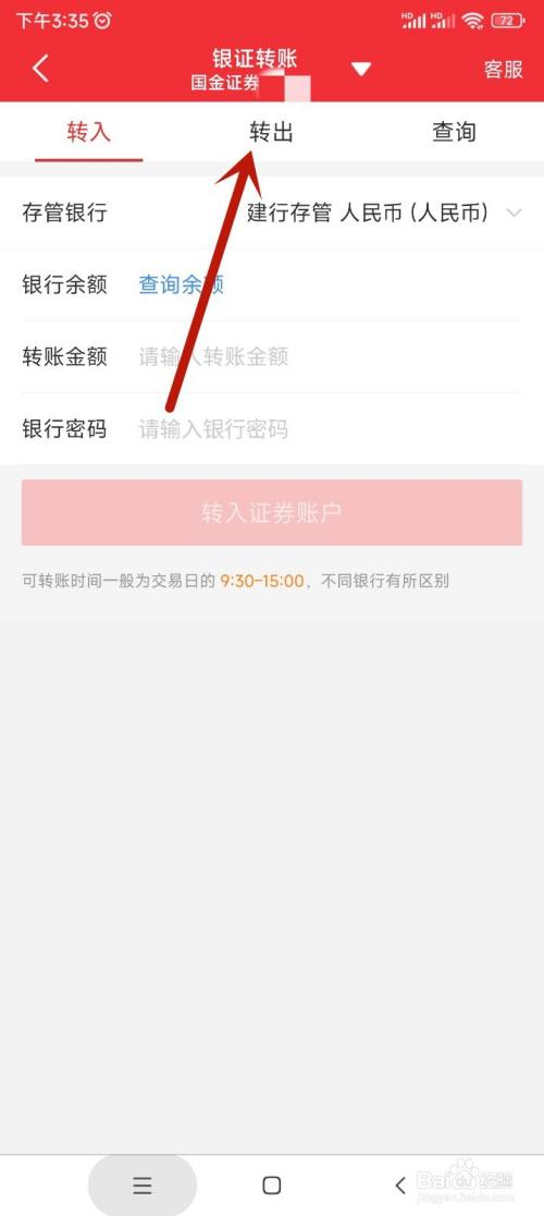 在银证转账页面,点击转出,进入资金转出页面。