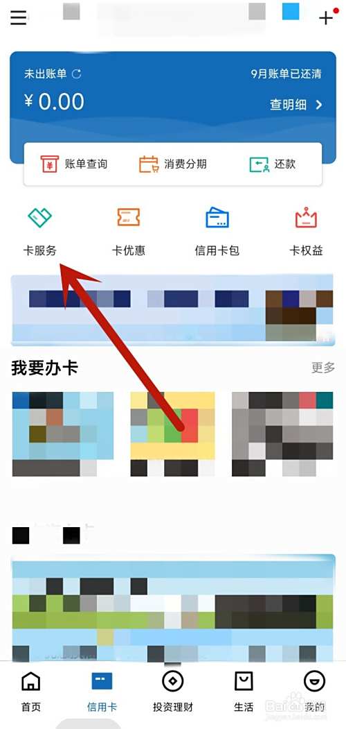 进入中国建设银行APP首页,在底部,找到底部信用卡,点击打开。