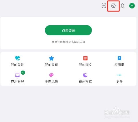 打开如下图界面,选择界面右上方的设置图标,点击打开