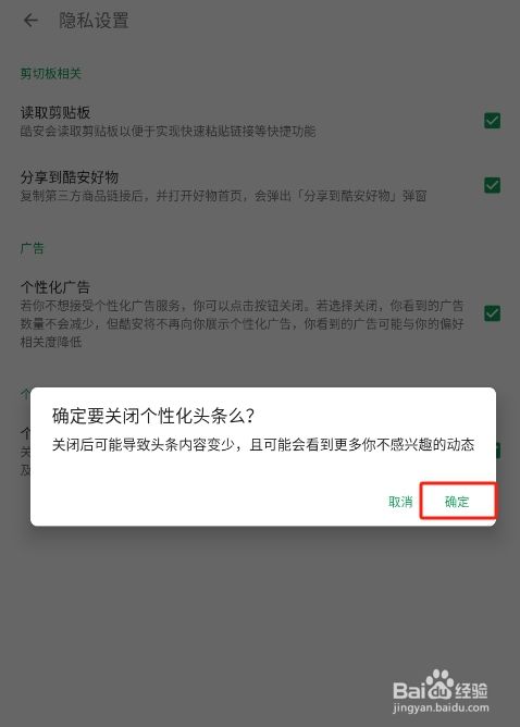 弹出如下图界面,提醒是否封闭个性化保举,点击确定按钮