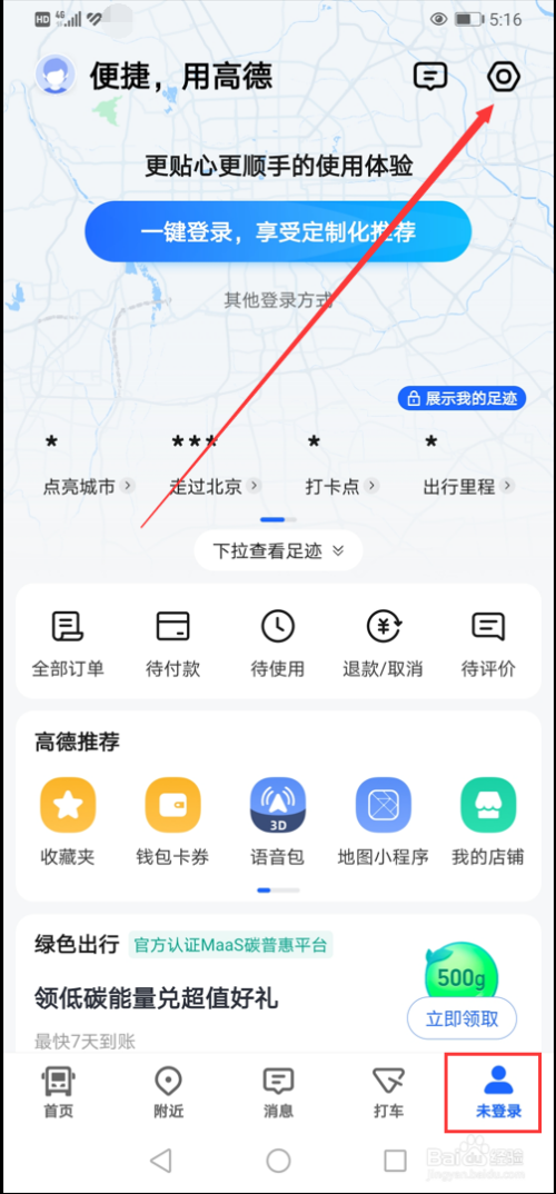 选中APP右下角的“未登录”,然后在弹出的窗口中点击右上角的“设置符号”;