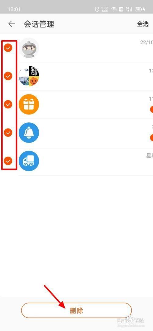 勾选要删除的动静,点击删除。