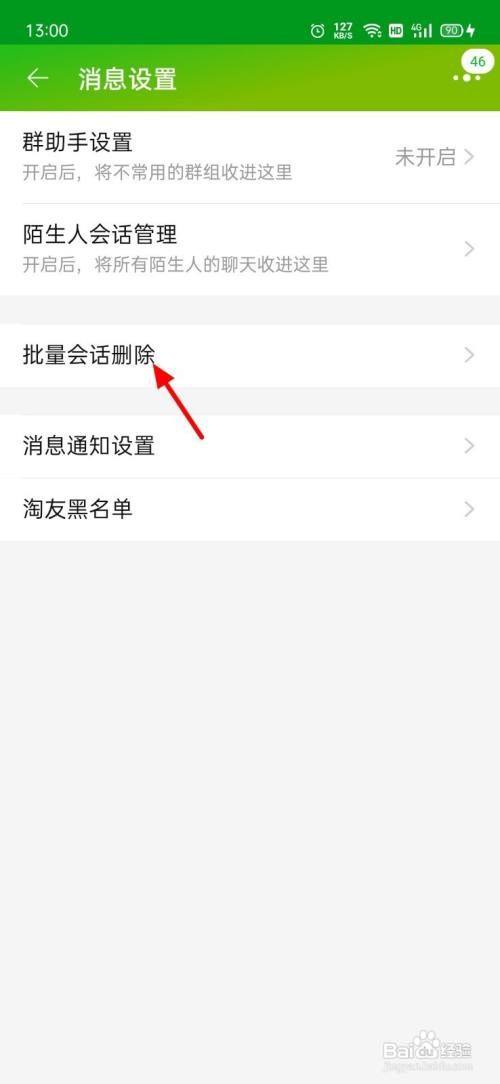 在动静设置界面,点击批量会话删除。